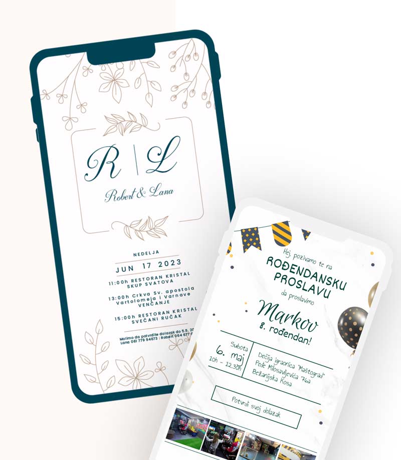 Bilo da organizuješ rođendan, svadbu, godišnjicu braka, krštenje ili bilo koju drugu proslavu, kod nas ćeš pronaći savršenu pozivnicu za svaku priliku!